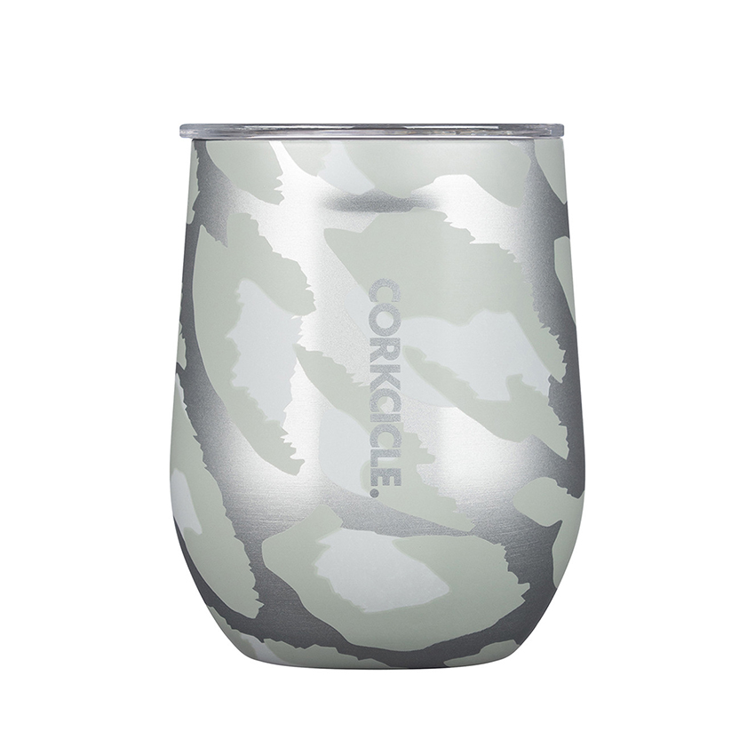 Corkcicle Insulated stainless steel cups are designed to look stylishly cool while presenting functionality and sustainability. Designed in the shape of stemless wine glasses, the silver, splotched snow leopard 350 ml cups are a part of Corkcicle’s Exotic collection. They are triple-insulated to keep your drinks cold or warm for longer. Impress at the office, lunches, dinner parties or when you’re simply out and about. Corkcicle’s signature flat sides add extra grip and “coolness.” The 350ml is sized for a single cup of coffee, tea, hot chocolate or a cool drink and with a slip-proof bottom, there’ll be less spills. Of course some personally prefer it for a nice glass of cab or chardonnay…